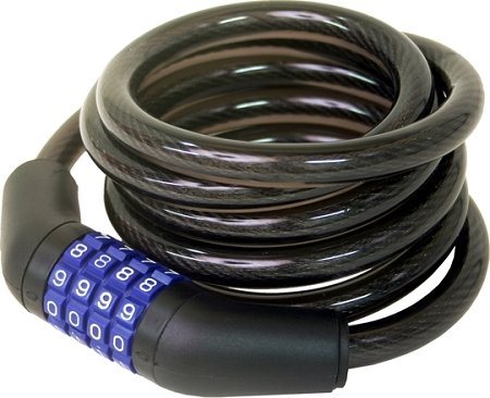 Vinyl covered spiral steel cable. Ideal for bicycles. Create or change your personalized combination as many times as needed.